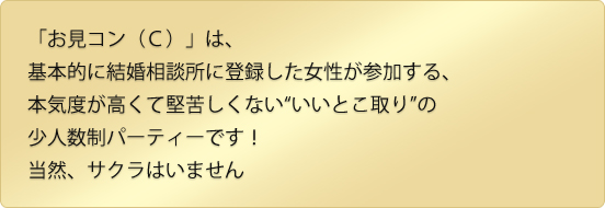 - お見コンは少人数の定員制です。満席の場合は参加できない場合もあります