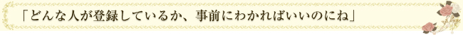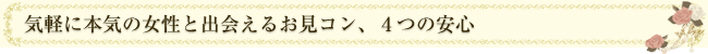 協会に登録している=真剣交際に前向きな女性と出会うことができます。サクラはひとりもいません - 安心2 「いい人がいれば結婚」程度の気持ちで十分